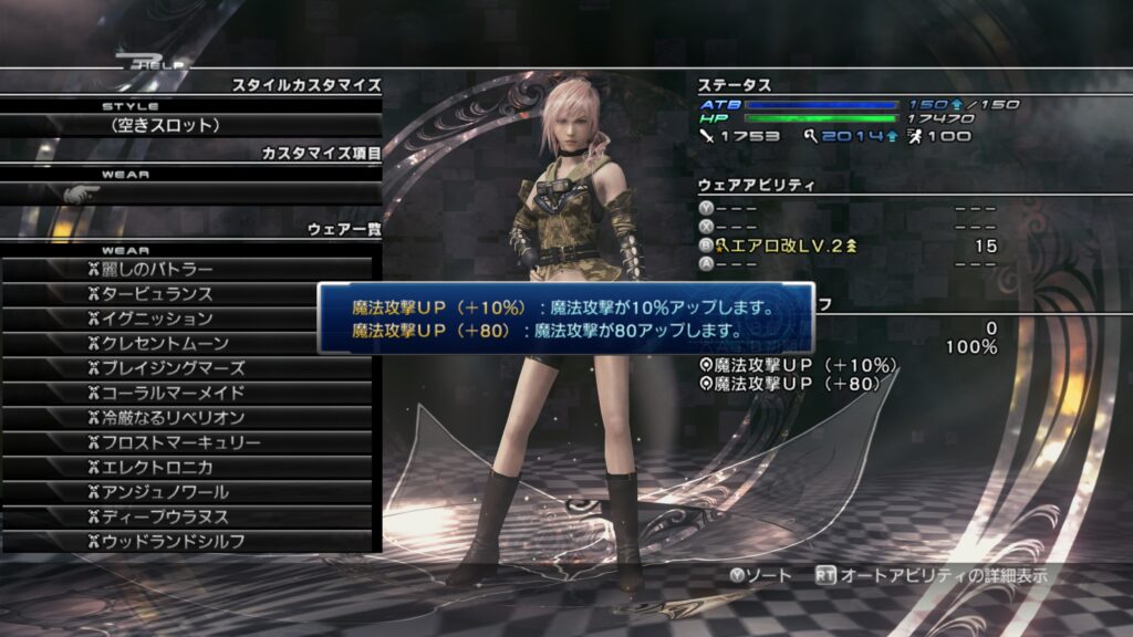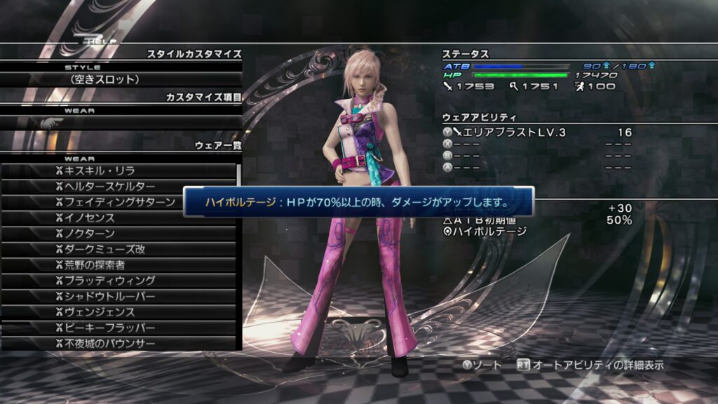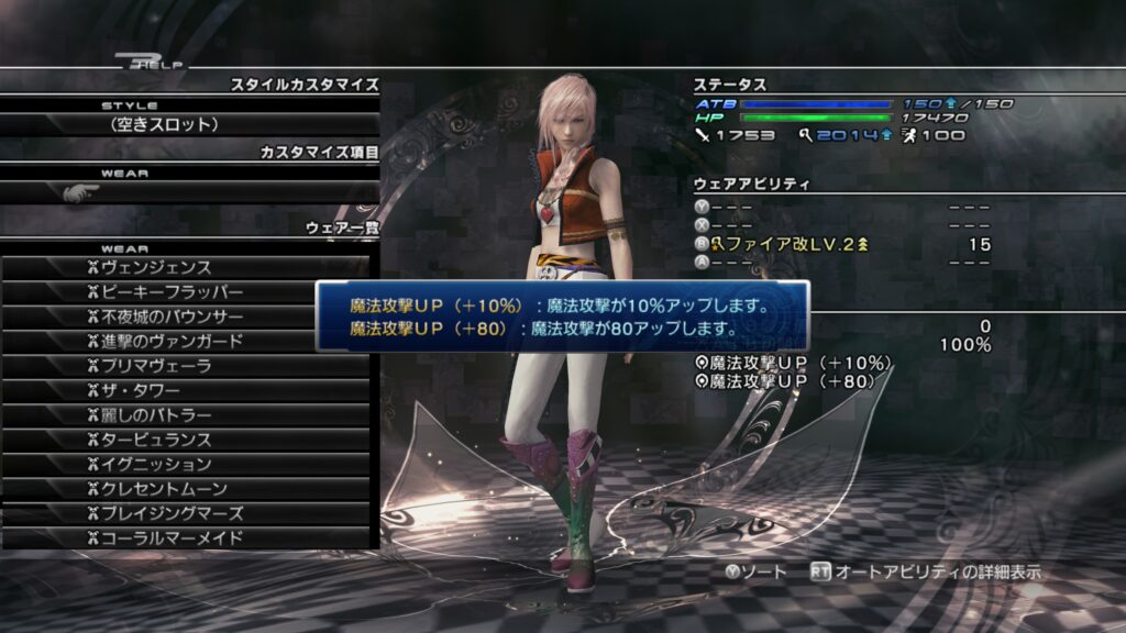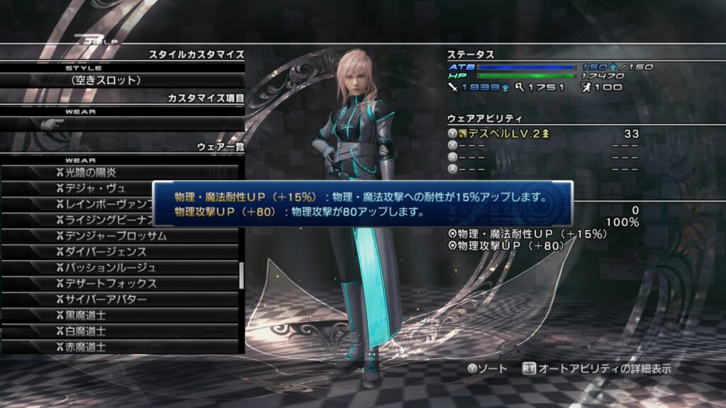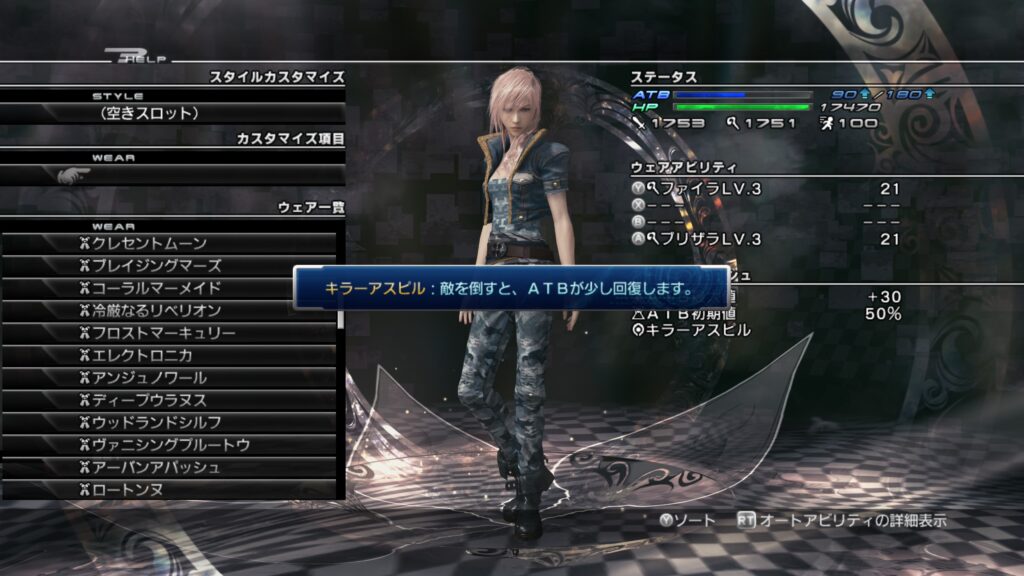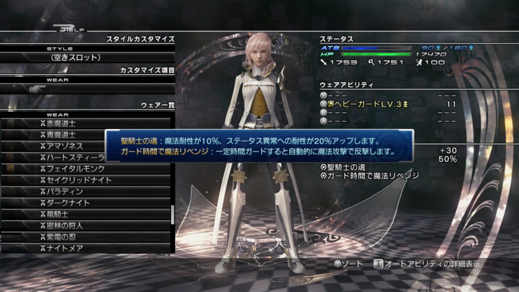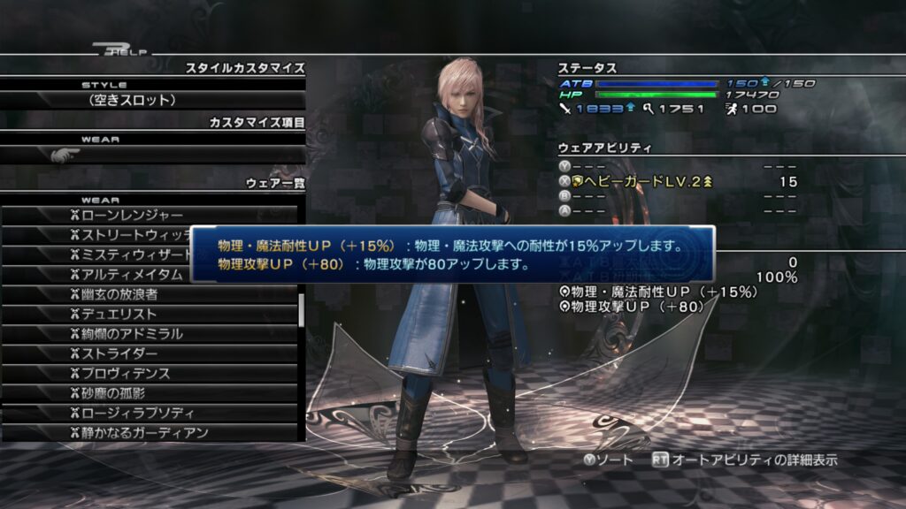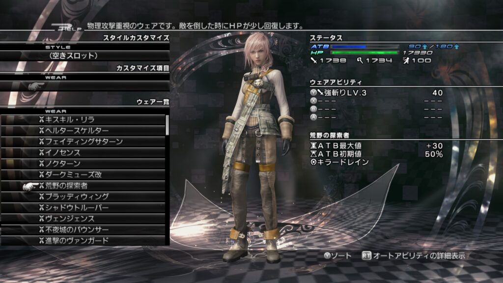 「ライトニングリターンズ FFーXⅢ」のウェアカスタマイズについて紹介します。