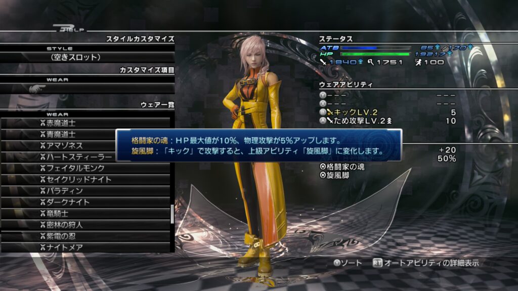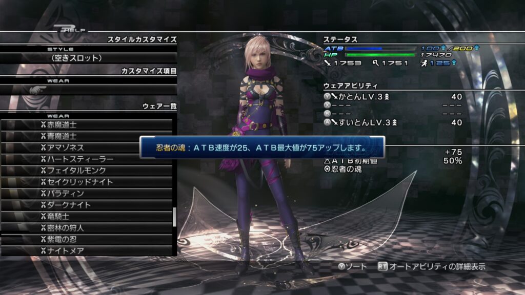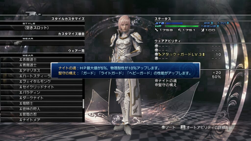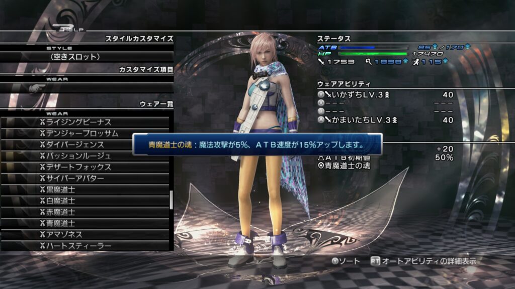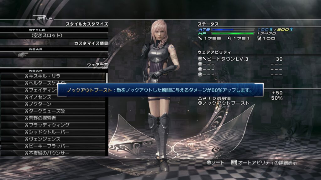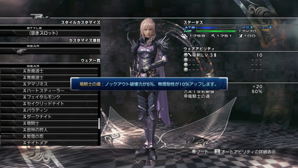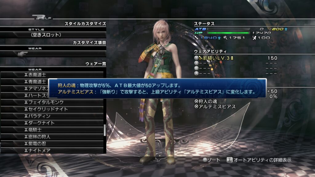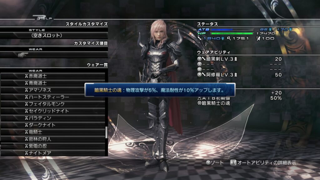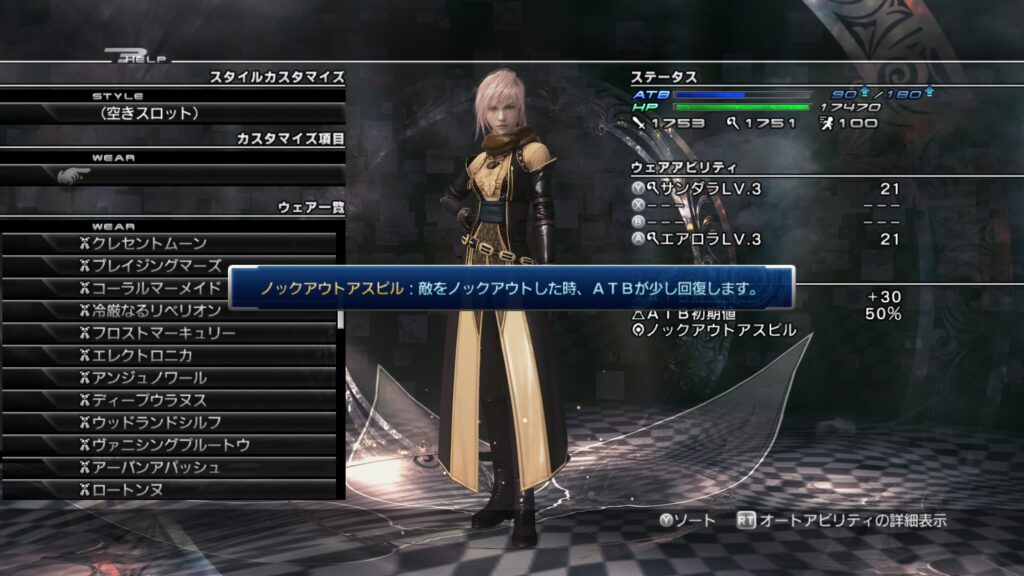 「ライトニングリターンズ FFーXⅢ」のウェアカスタマイズについて紹介します。